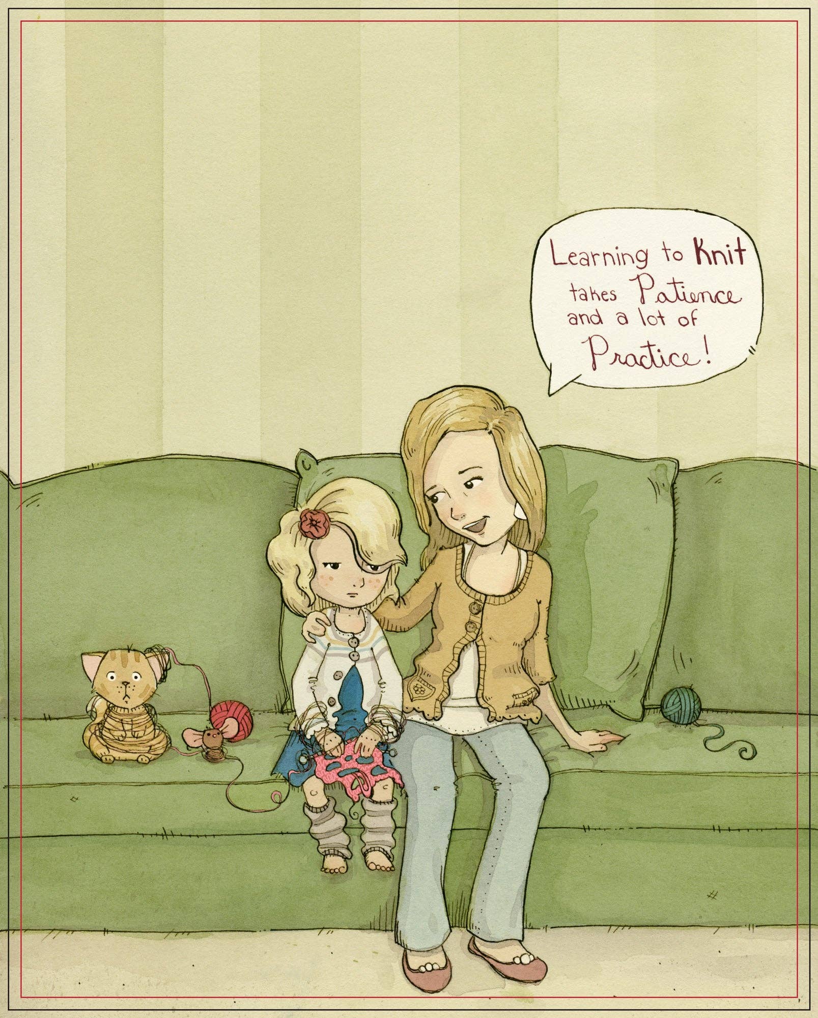Annie really wants to learn how to knit. But when her mommy teaches her the stitches, she feels frustrated that her knitting looks more like swiss cheese than a real scarf. Will she slow down, be patient, and keep trying?
