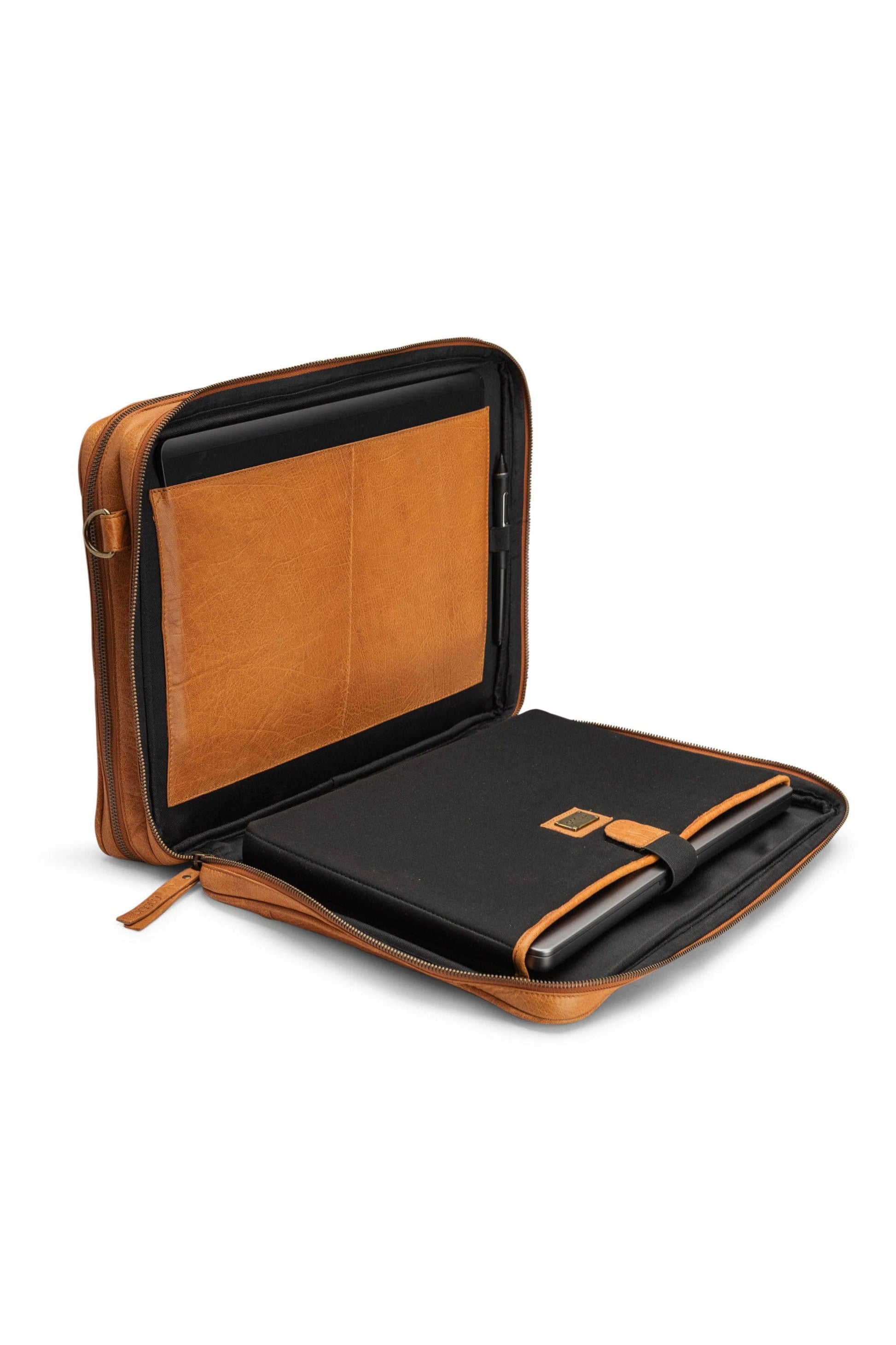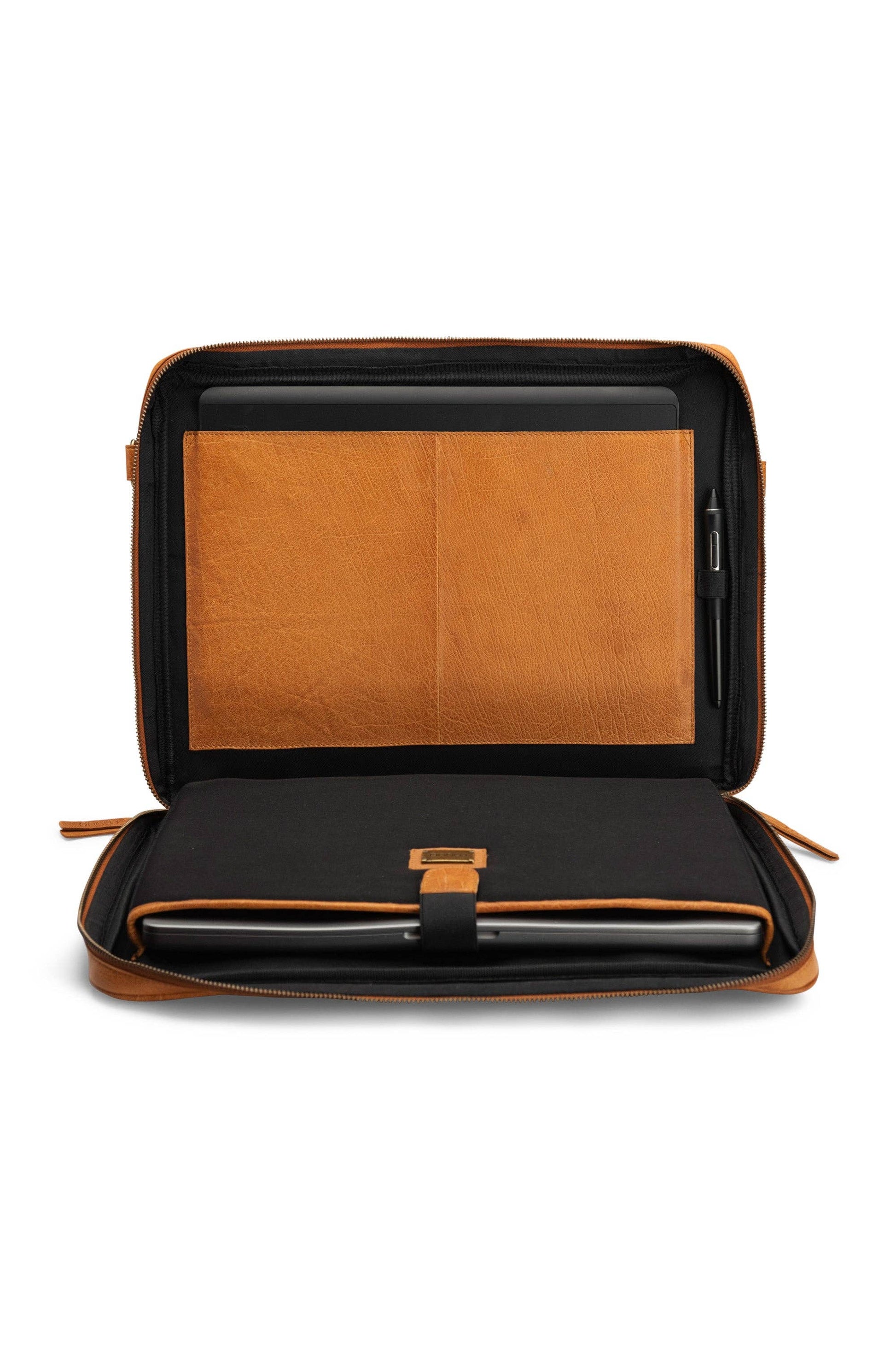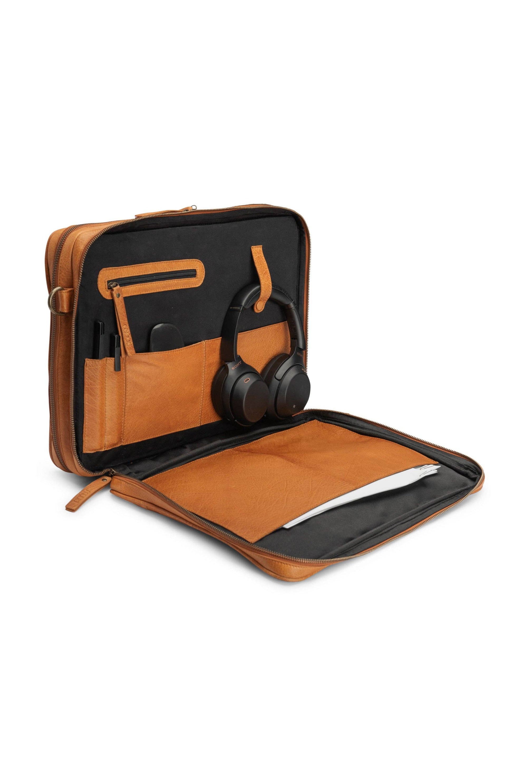 Drea is a chic and robust laptop bag boasting numerous fantastic features. It has two capacious zippered compartments, with the main one equipped with a cushioned laptop sleeve. On the front, an additional compartment for your accessories can be found. The main compartment has ample room for books and work documents.