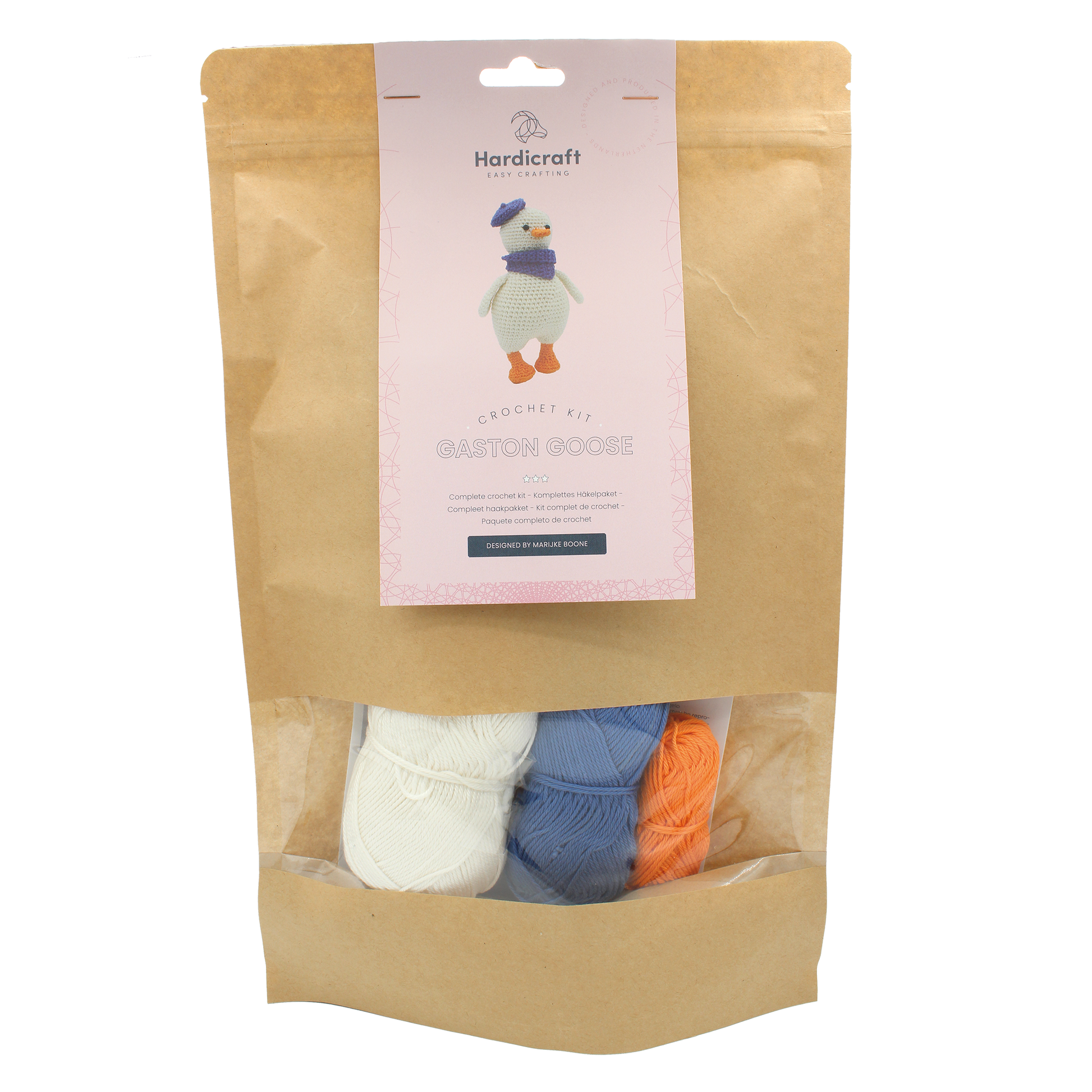 This sweet little goose is sure to brighten up your day! With its vibrant colors and fun design, Gaston is a great addition to any collection. This pack contains a pattern, quality cotton yarn and all the materials needed to get started (excluding crochet hook). Gaston is approximately 20 cm tall and was made with a 2.5 mm crochet hook.