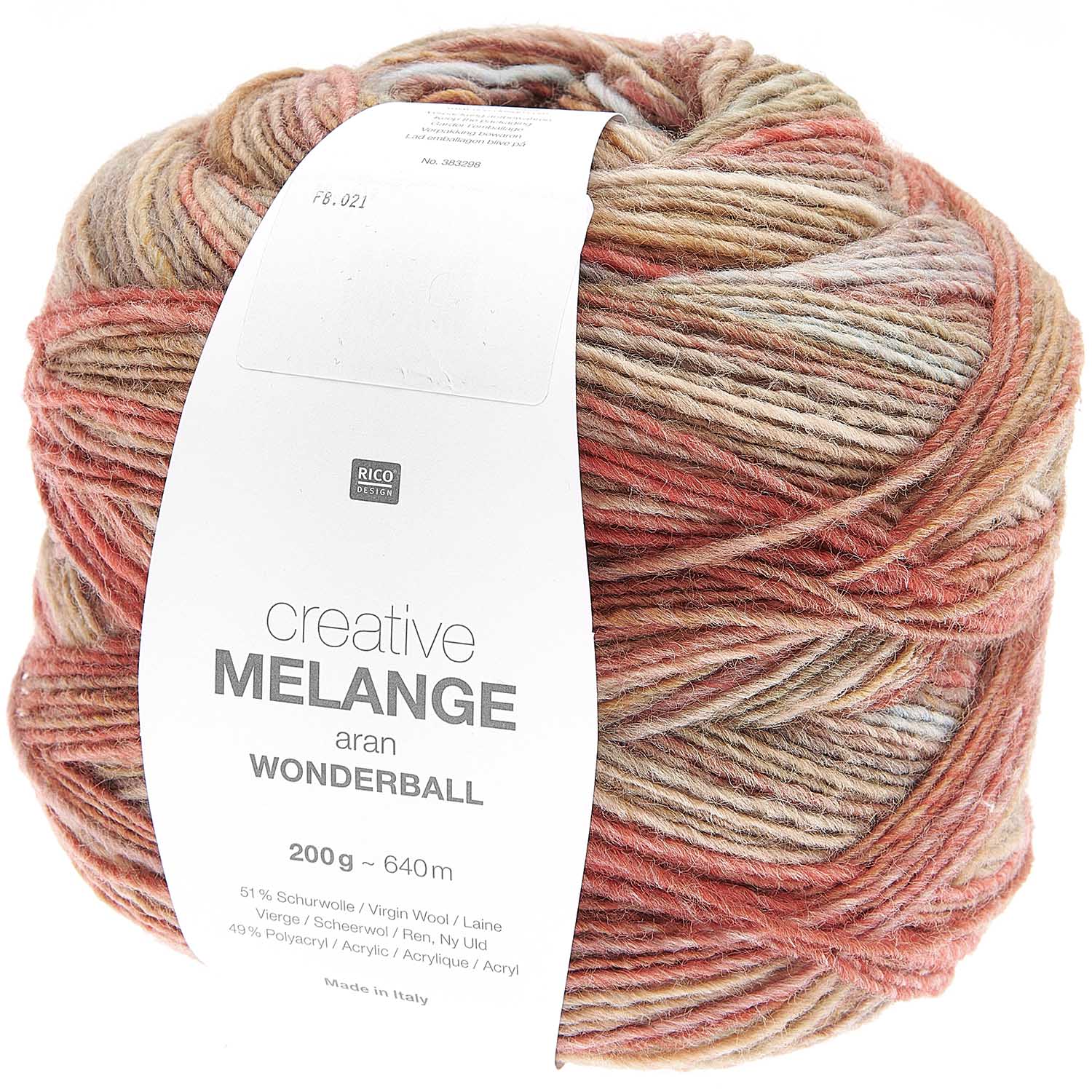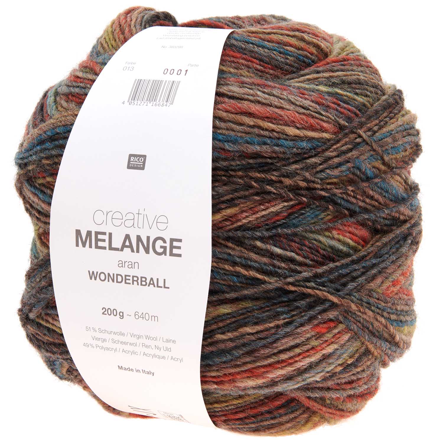 Rico's Creative Melange Aran Wonderball is a unique yarn perfect for your knitting and crocheting projects. It's soft and versatile, and the interesting colour palette presents endless possibilities. Create something truly special with Rico's Creative Melange Aran Wonderball.