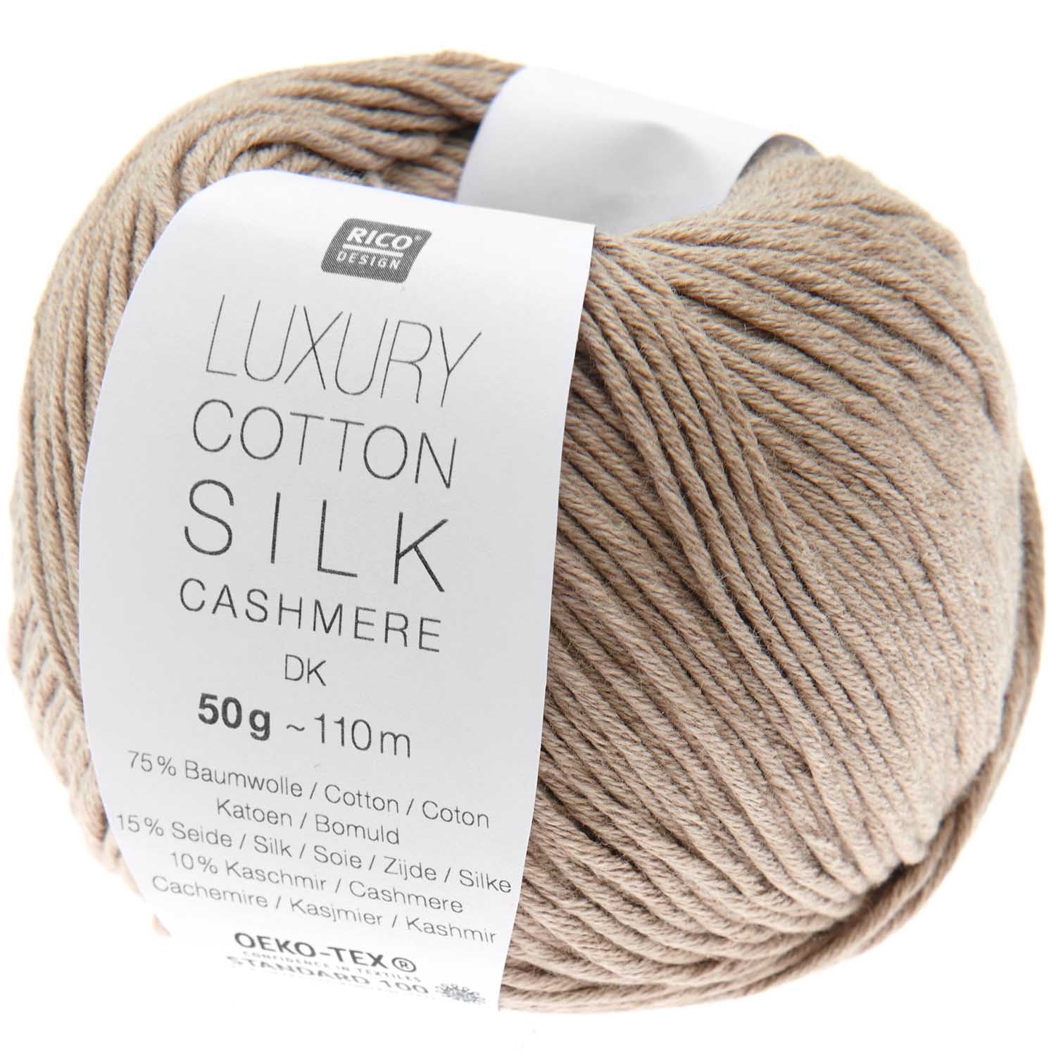 Luxury Cotton Silk Cashmere DK consists of 100% natural fibres. This cotton, silk and cashmere combination creates an absolutely luxurious yarn. All three fibres bring their own benefits. The silk gives the yarn a subtle sheen, while the cashmere makes it supple and soft. The cotton brings the fibres together in a smooth thread and makes the quality an ideal summer yarn with its cooling properties. Great for garments for adults, children and babies.