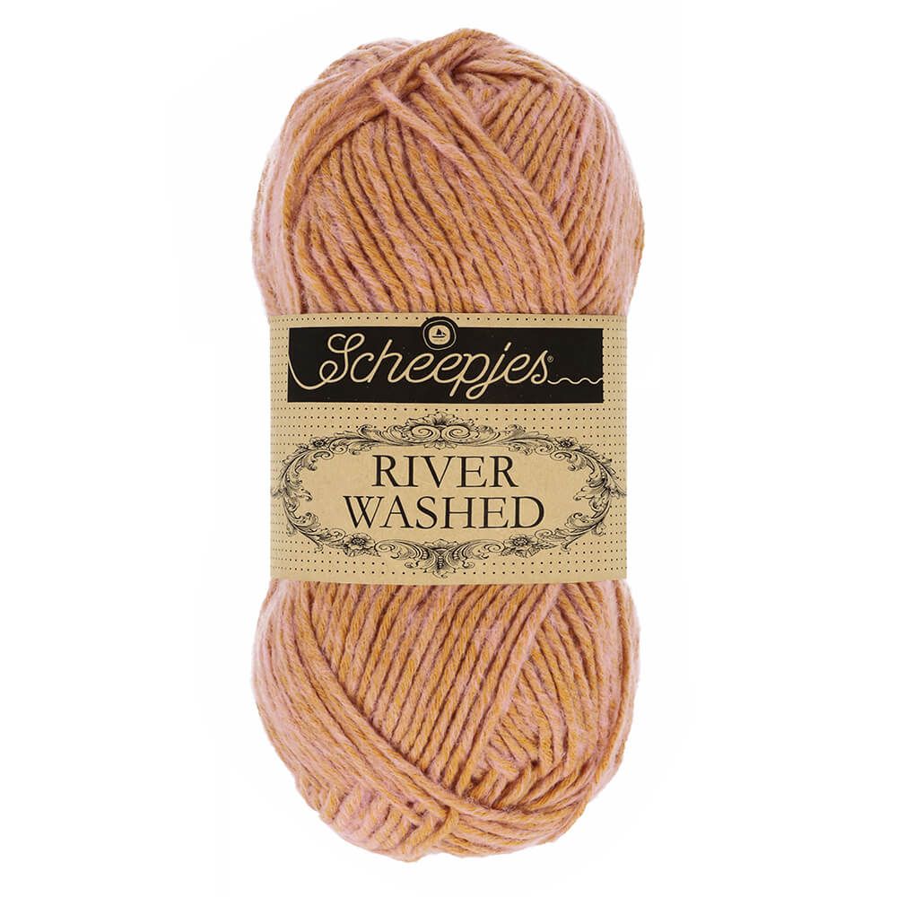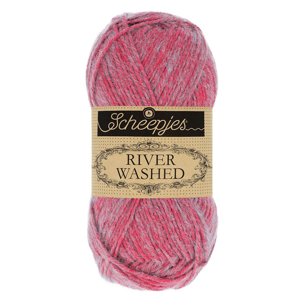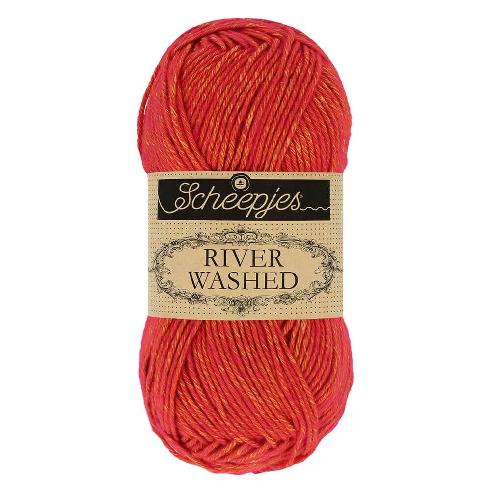 "The striking Scheepjes River Washed yarn range has been created in the same way as the popular Scheepjes Stone Washed, with its key difference being the coloured (rather than white) inner fibre which, like Stone Washed, is surrounded by a contrastingly coloured net. The result: a uniquely expressive yarn with a tactile and rustic quality. Giving all projects a tough and contemporary look, Scheepjes River Washed XL is the ideal Aran weight yarn for creating a range of wearable items that transition through the changing seasons with ease. Made from a 78% Cotton and 22% Acrylic blend, this yarn is simultaneously soft, breathable, highly durable and has a wonderful woolly look & feel. It's also the perfect yarn for those with a sensitive touch looking for a wool-free alternative to wool. The Scheepjes River Washed and Stone Washed collections further pair wonderfully together, providing you with endless inspiration for upcoming projects and colour palettes.